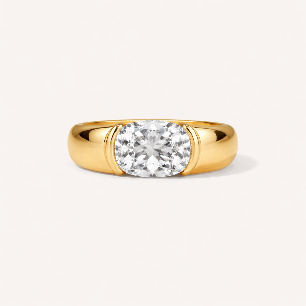 - Pictured is a Elongated Cushion - Lab Grown Diamond 1.90cts set in a bezel